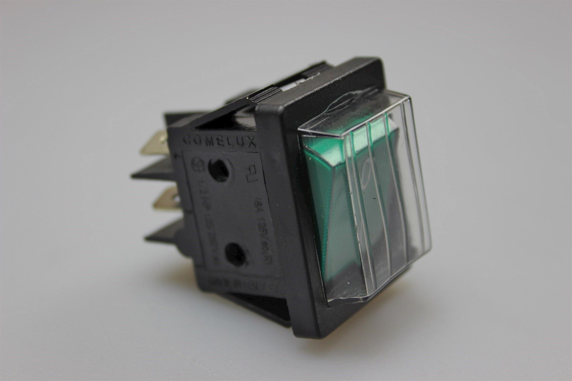 Dobbelt vippe avbryter i grøn m/lys og svart hus, samt gummihette.