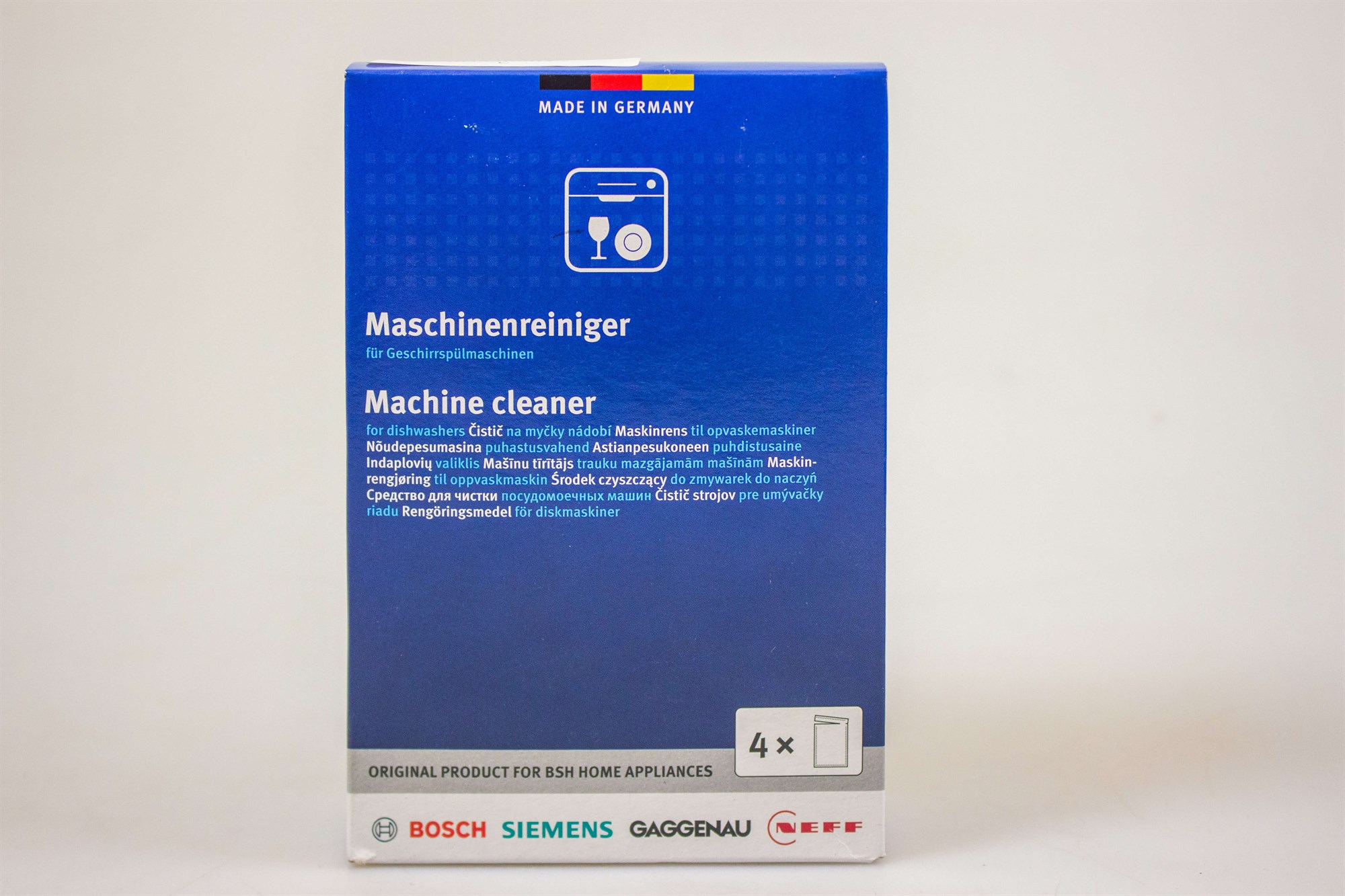 Denne maskinrens er spesielt utviklet for universal oppvaskmaskiner. Én pose passer perfekt i såpekammeret på oppvaskmaskinen. Produktet rengjør indre deler, filtre og spylearmer og etterlater maskinen skinnende ren og fri for lukt. Bruk én pose per behandling.