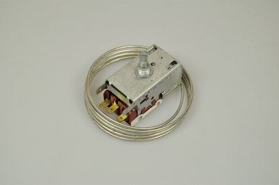 Denne termostaten er til kjøledelen. Ved regulering av kjøletermostaten opprettholdes ønsket temperatur i kjøleskapet - jo højere der skrues op for termostaten, desto koldere bliver der i køleskabet - ved en høyere indstilling på termostaten, bliver det kaldlere i kjøleskapet.